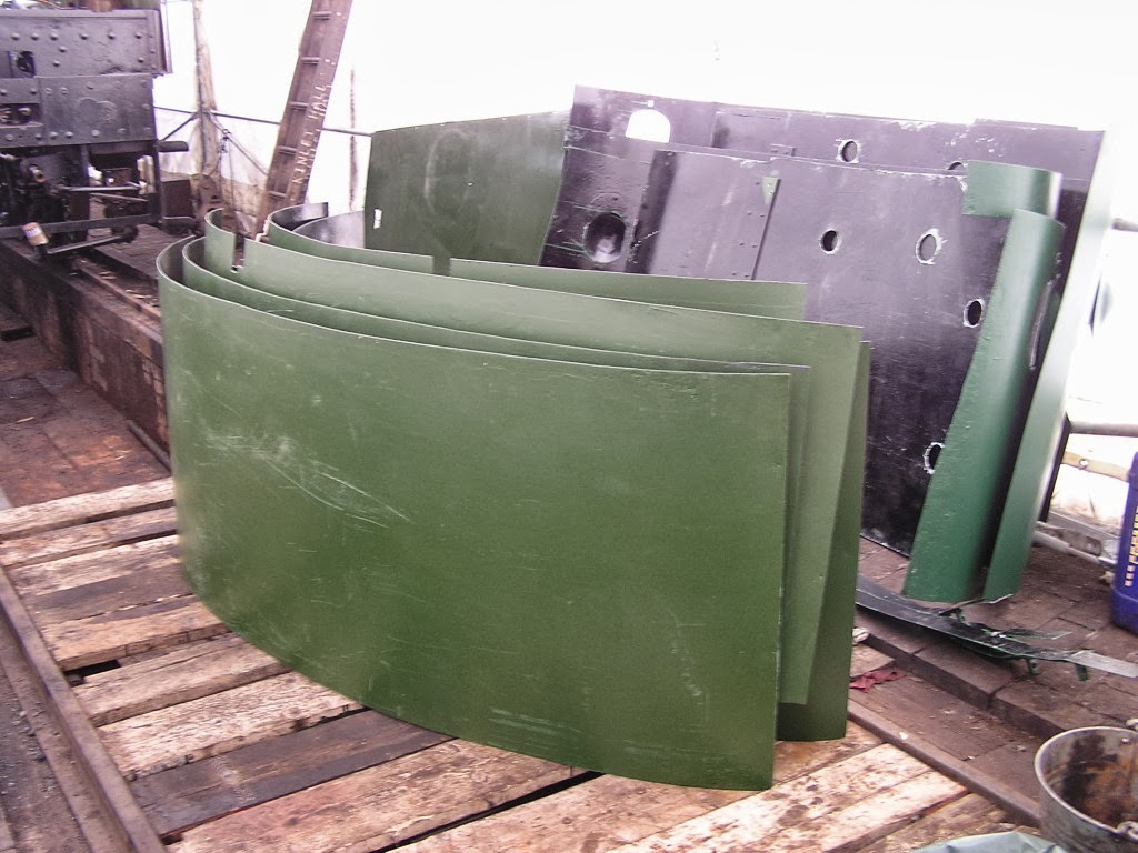 Plating at the front end of the locomotive and over the steam chest has been finally secured in position